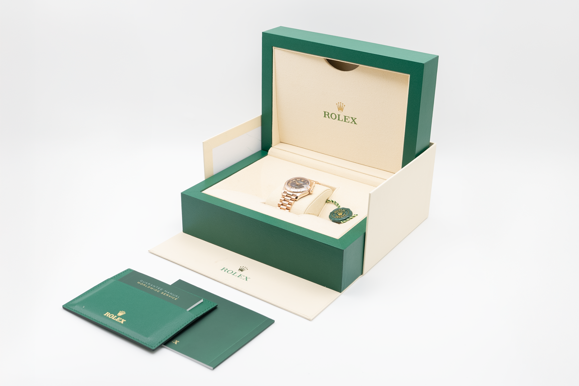 The watch is fitted with a President bracelet, crafted from Everose gold and designed for supreme comfort and elegance. The concealed Crownclasp ensures a seamless aesthetic, further enhancing the bracelet’s luxurious feel.